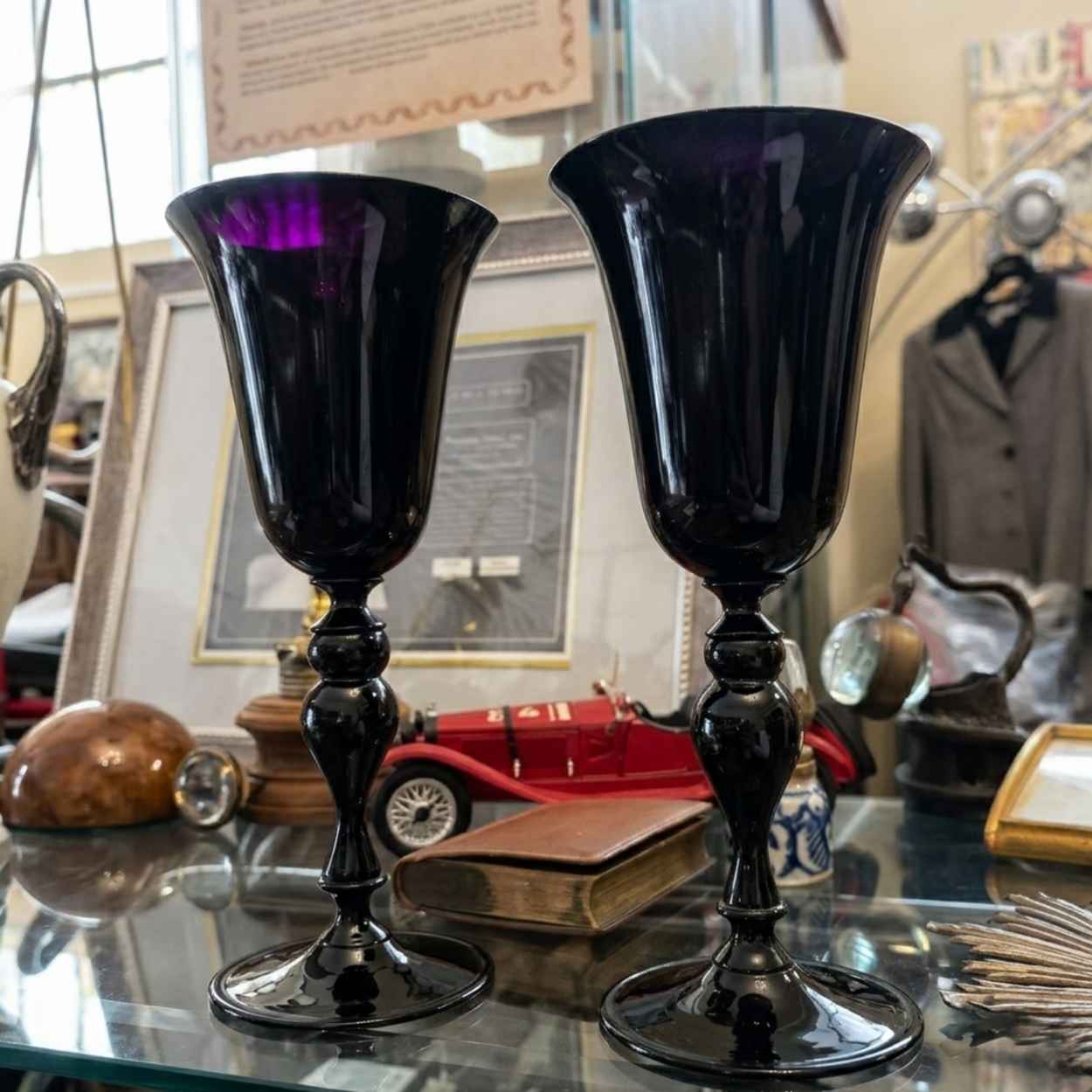 Gli esemplari sono in condizioni eccellenti. La superficie vitrea è integra, priva di sbeccature o graffi superficiali. Il colore è uniforme e la brillantezza del vetro è perfettamente conservata.
