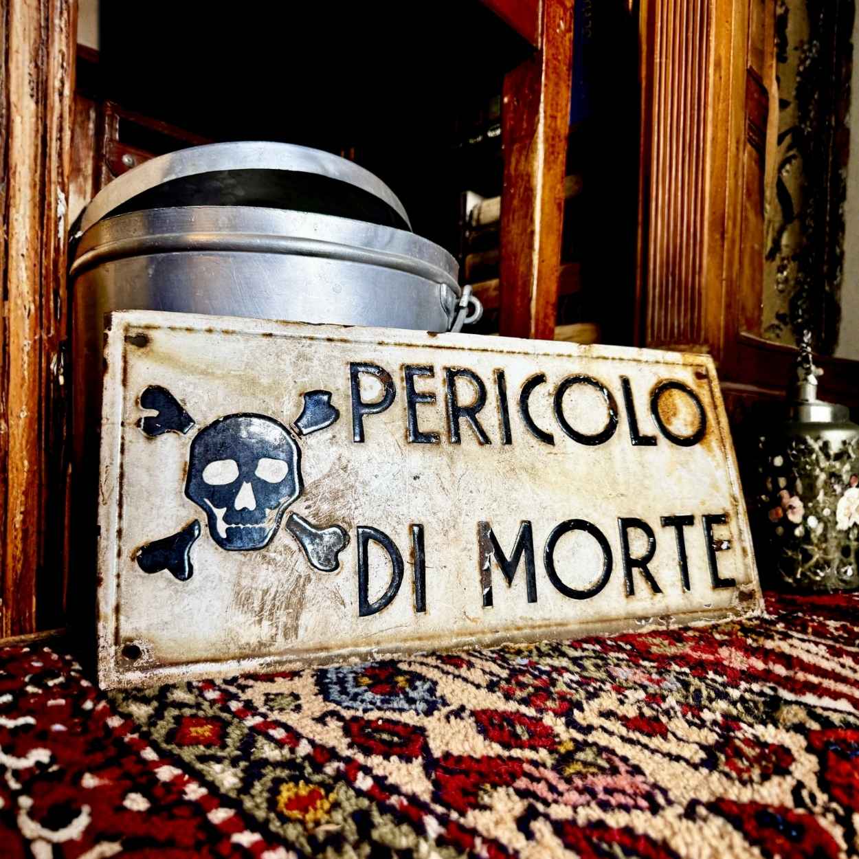 Insegna Vintage “Pericolo di Morte” – Metallo Smaltato a Rilievo