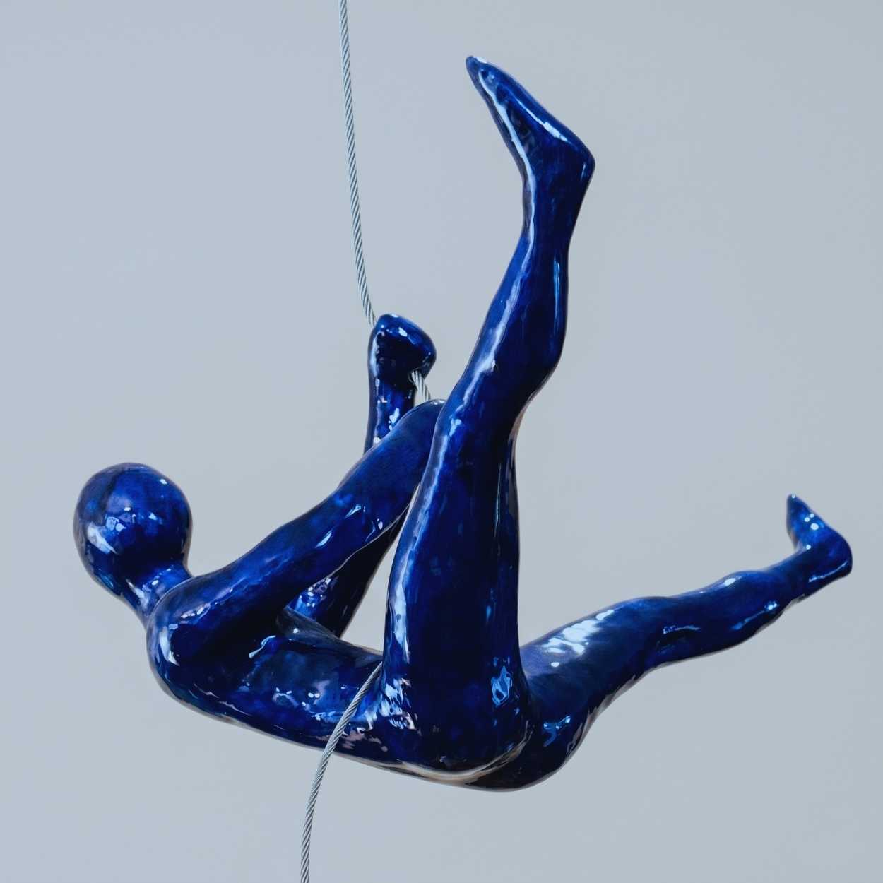 Scultura Sospesa “The Climber” – Resina Blu Cobalto